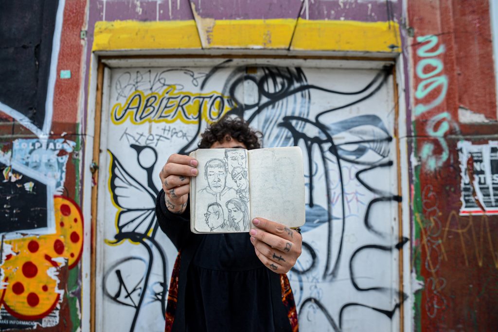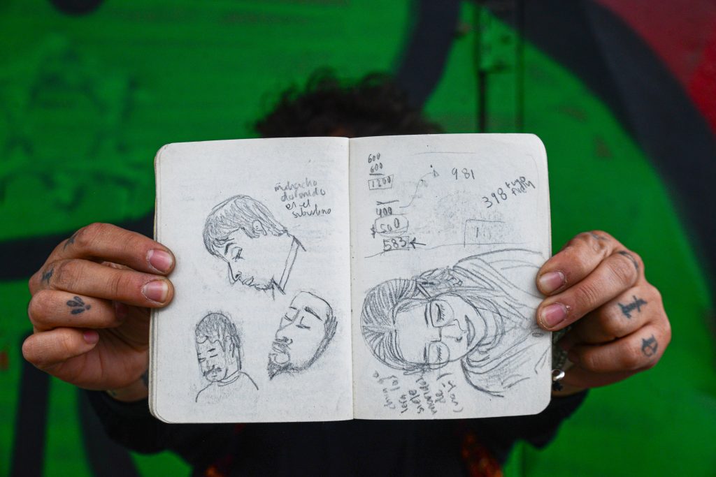Esta serie fue dibujada en el metro de la Ciudad de México y fotografiada en las calles del centro de Tijuana. Registro por Estefany Maya.