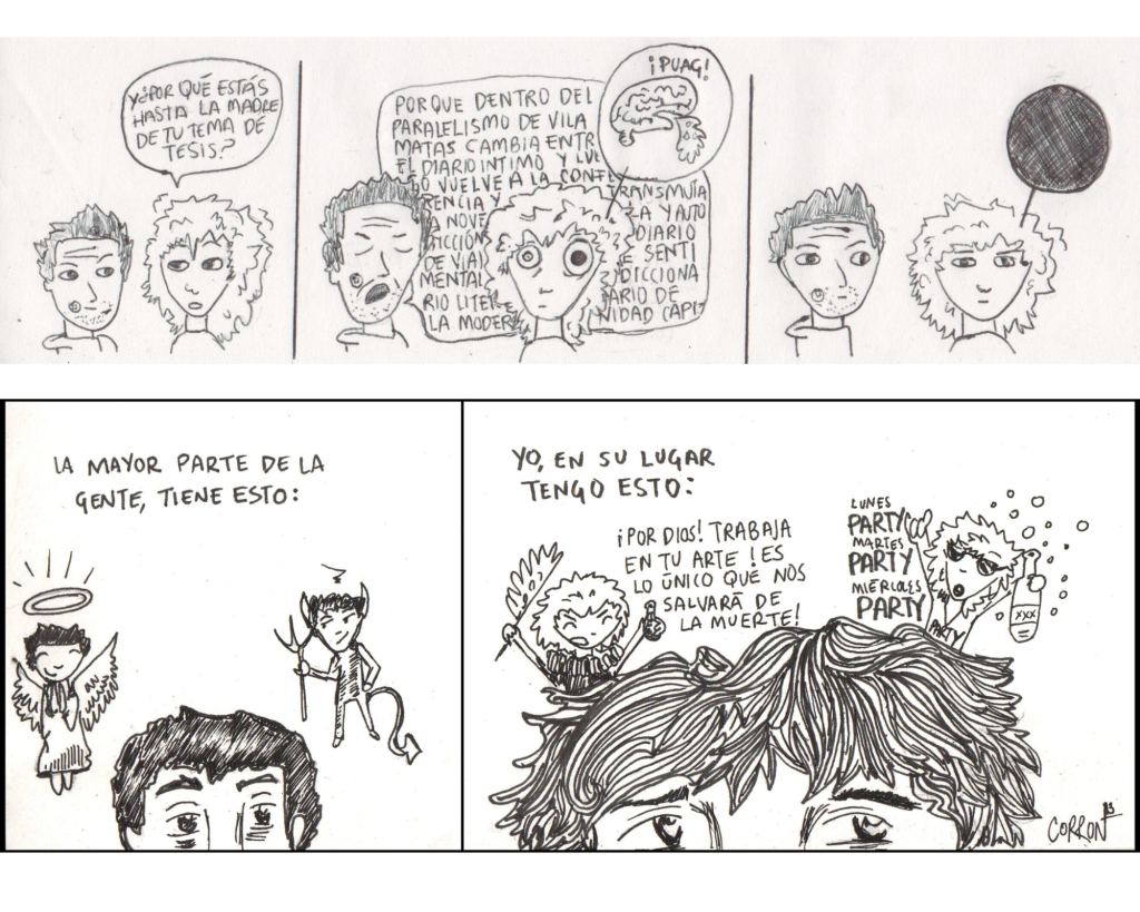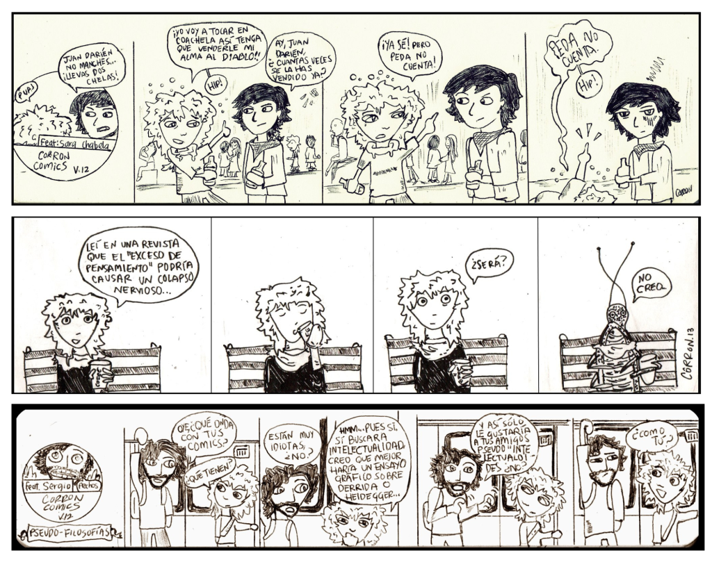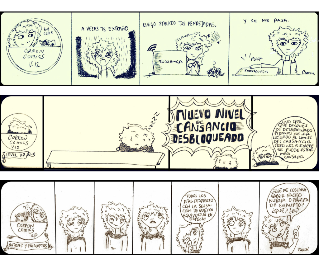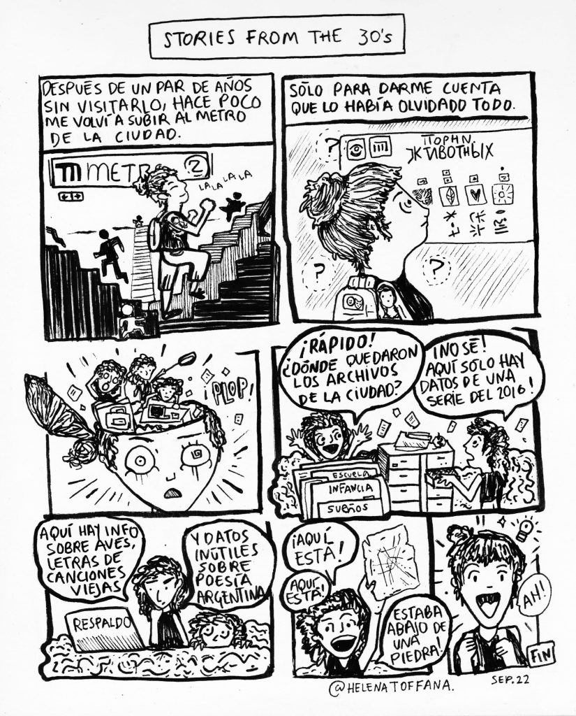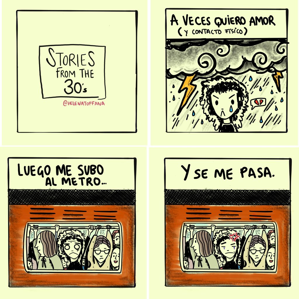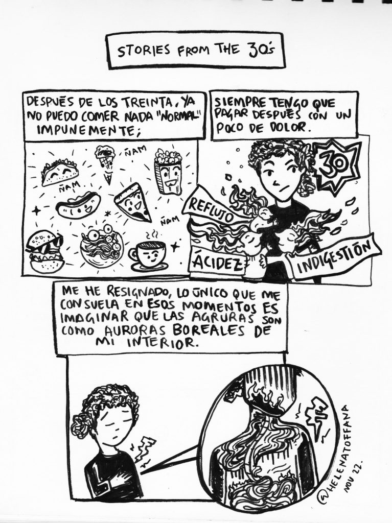 Llevo dibujando tiras de cosas que me pasan en la vida cotidiana por quince años. La manera en las que las he titulado ha cambiado varias veces y su formato también, pero su carácter cómico y agridulce es algo que he tratado de preservar sin importar qué esté aconteciendo con la vida y qué edad tenga. Recientemente se han quedado con el nombre de “Historias de los treintas” para aprovechar la decada que se me abre a continuación. Aquí incluyo algunas de mis favoritas.