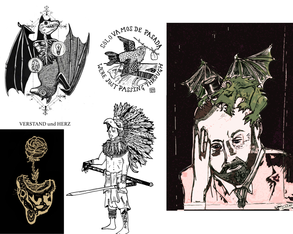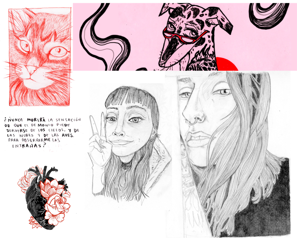 !Dibujitos hechos por el puro fin de expresar! Bueno, no todos, algunos son pedidos que tienen que ver con una idea músical, o para promocionar alguna cosa. Lo que sí, es que son muy libres. Hay metaforas narrativas, personajes pasados al papel, sueños, y retratos de amigas. Hay dibujos de hace muchos años, así que algunos están firmados bajo otros pseudonimos.